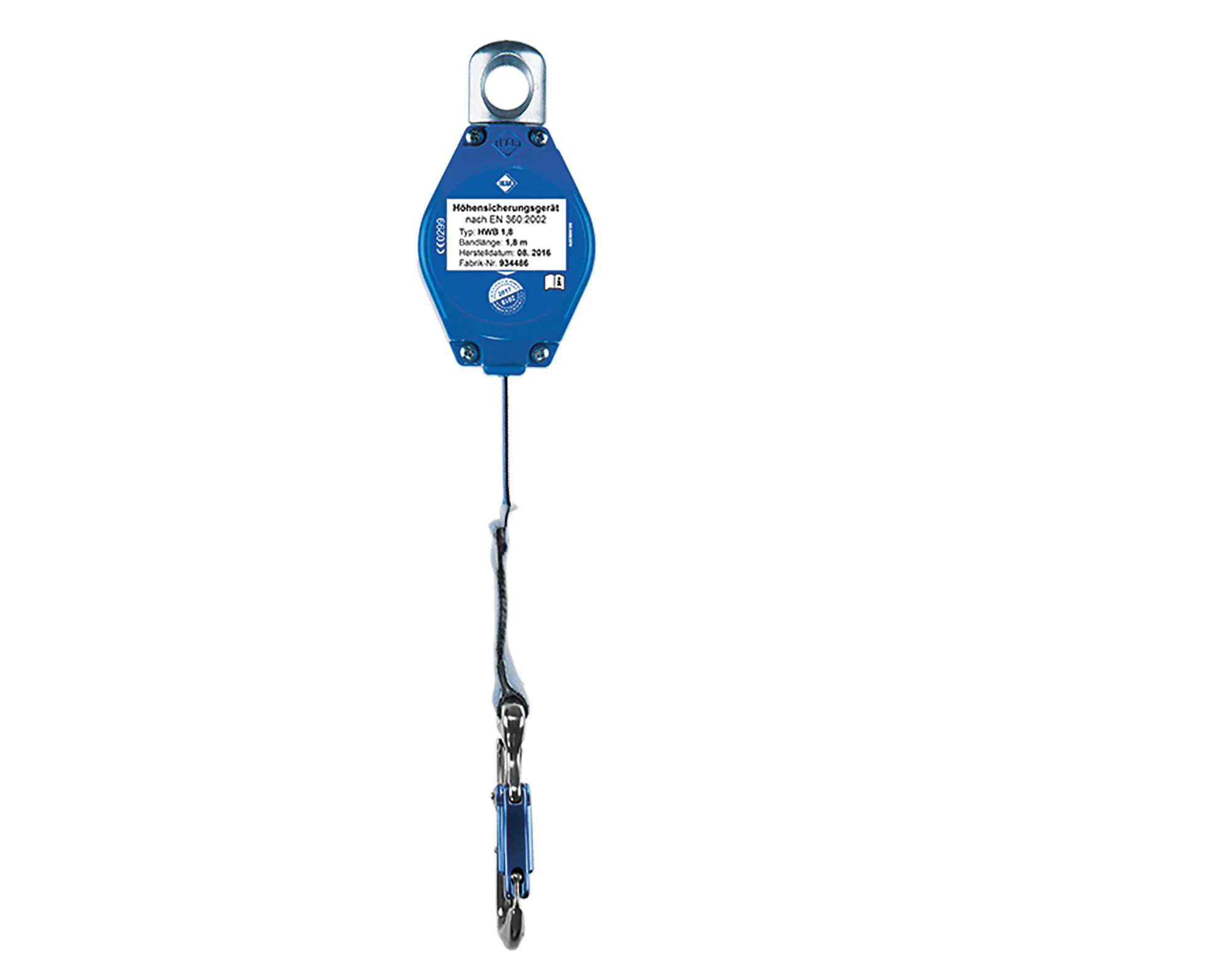 Widerstandsfähiges und wartungsarmes Höhensicherungsgerät mit Drehwirbelaufhängung.