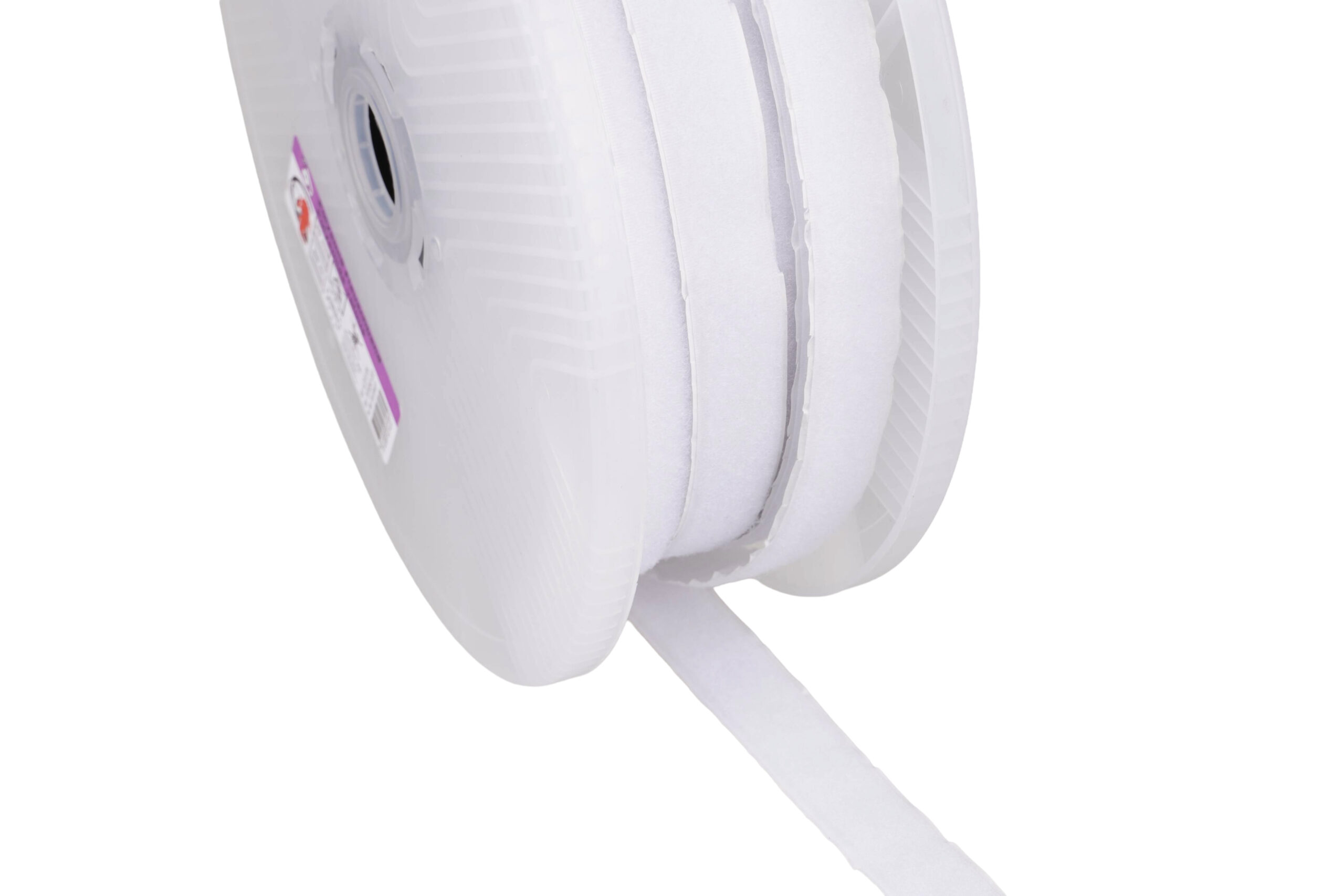 Aus Polyamid, mit Selbstkleberücken. Breite 20mm. Erhältlich als Flauschband oder Hakenband in zwei Farben.