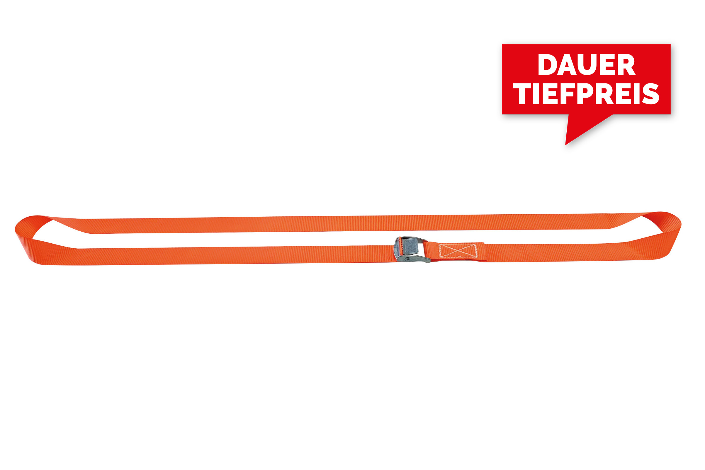 Umreifungsgurte mit Metallklemmschloss EN 12195-2. Verfügbar in verschiedenen Längen. Standardfarbe orange, weitere Farben auf Anfrage.
