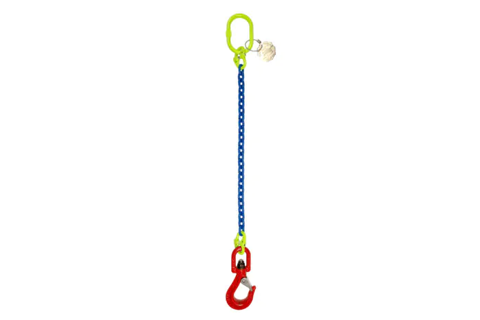 Kettengehänge der Güteklasse 10 mit Lasthaken und Verkürzer. Verfügbar mit Ketten unterschiedlicher Traglasten, Durchmessern und Längen.