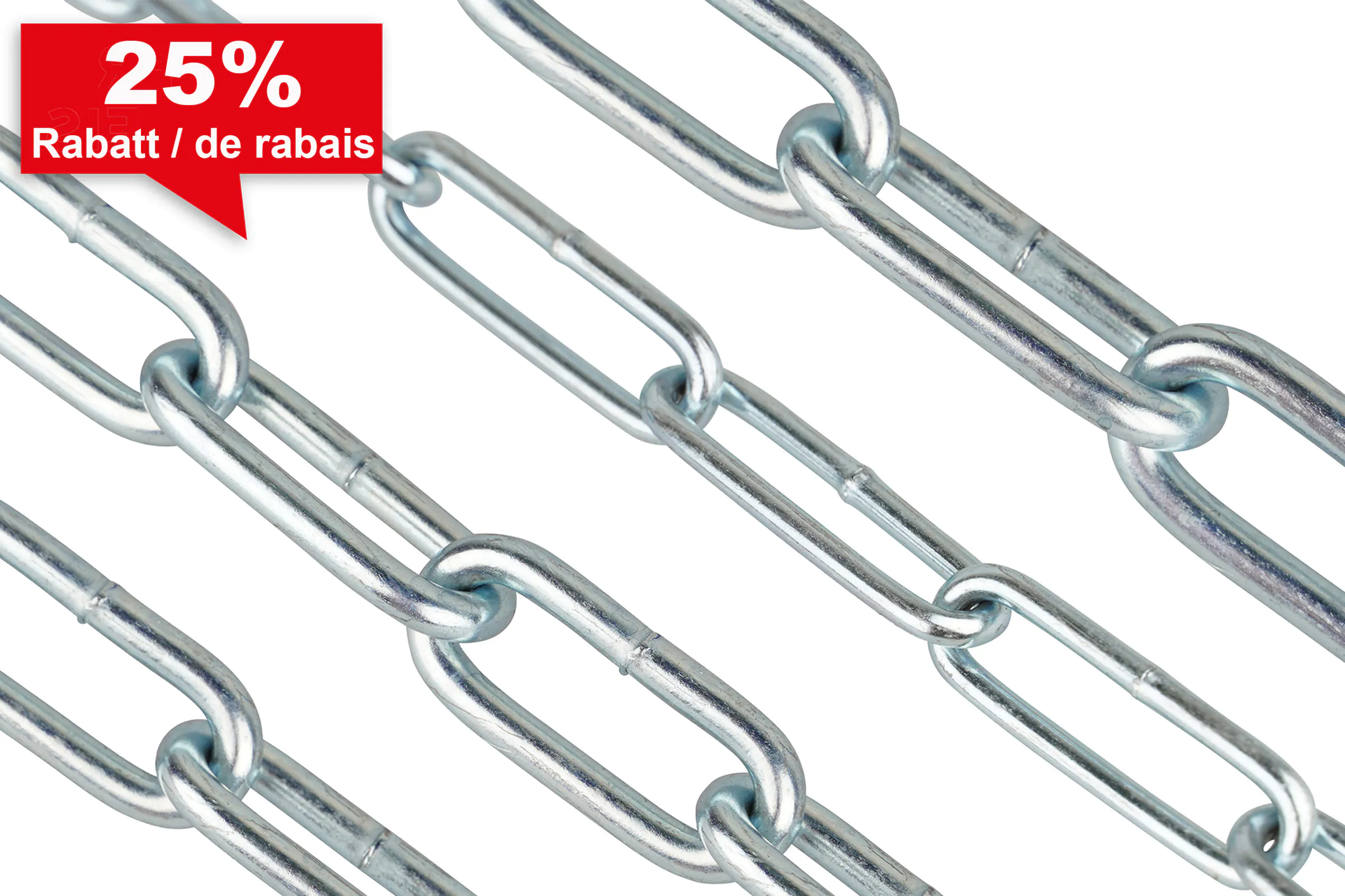 Kette aus verzinktem Stahl, geschweisst. Nicht zum Heben geeignet.