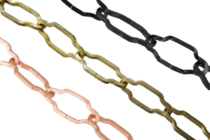 Elegant geschwungene Zierkette aus Metall für Dekozwecke. In verschiedenen Farben verfügbar. Nicht zum Heben von Lasten geeignet. Verkauf zu ganzen Spulen.