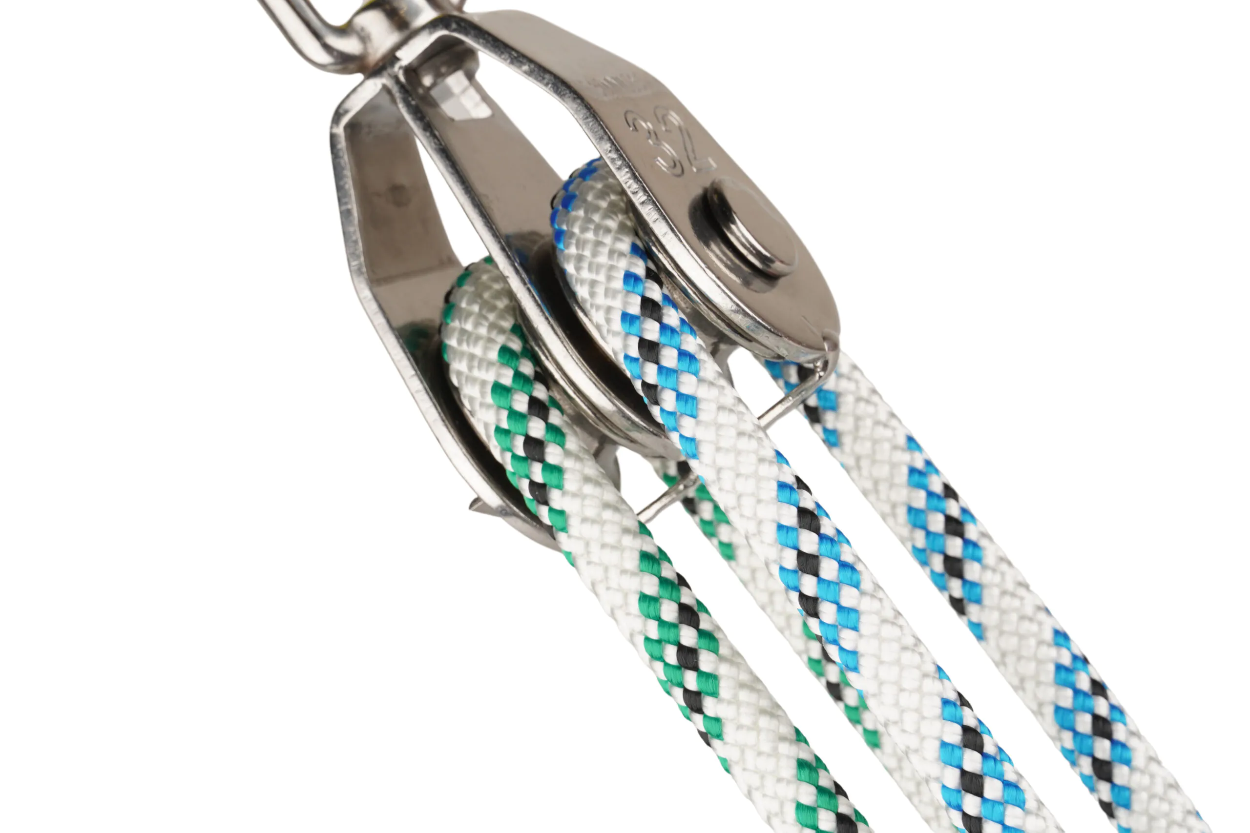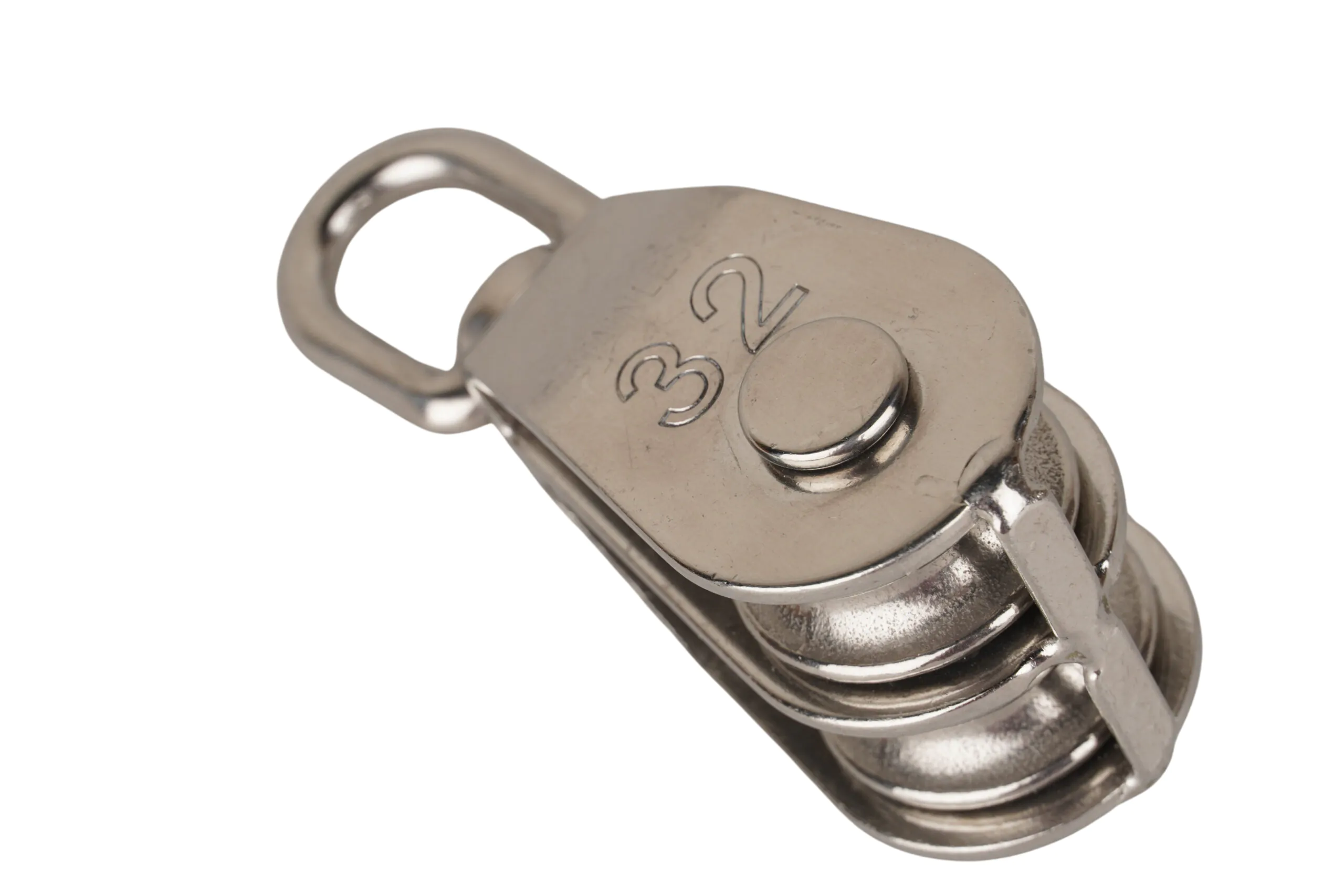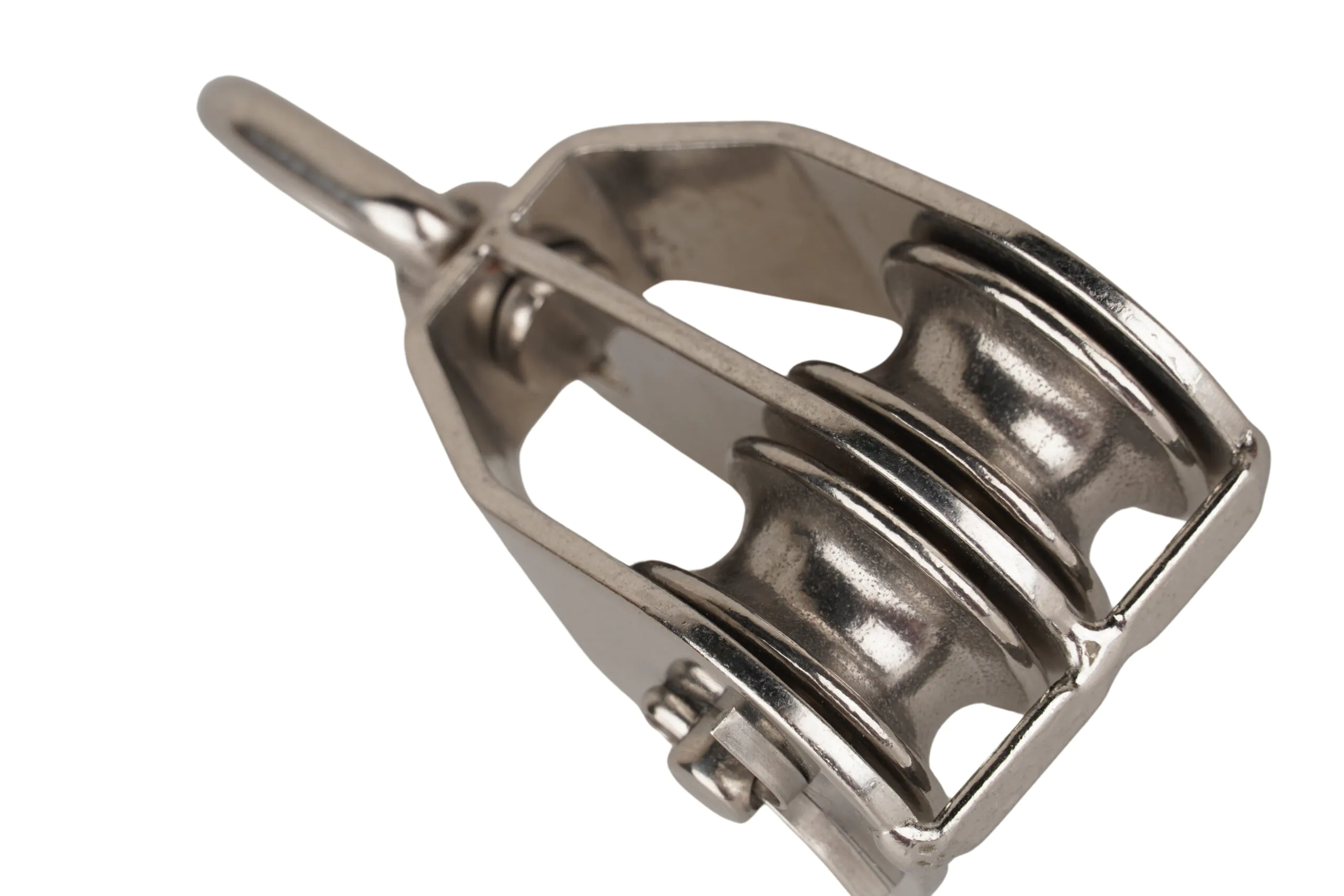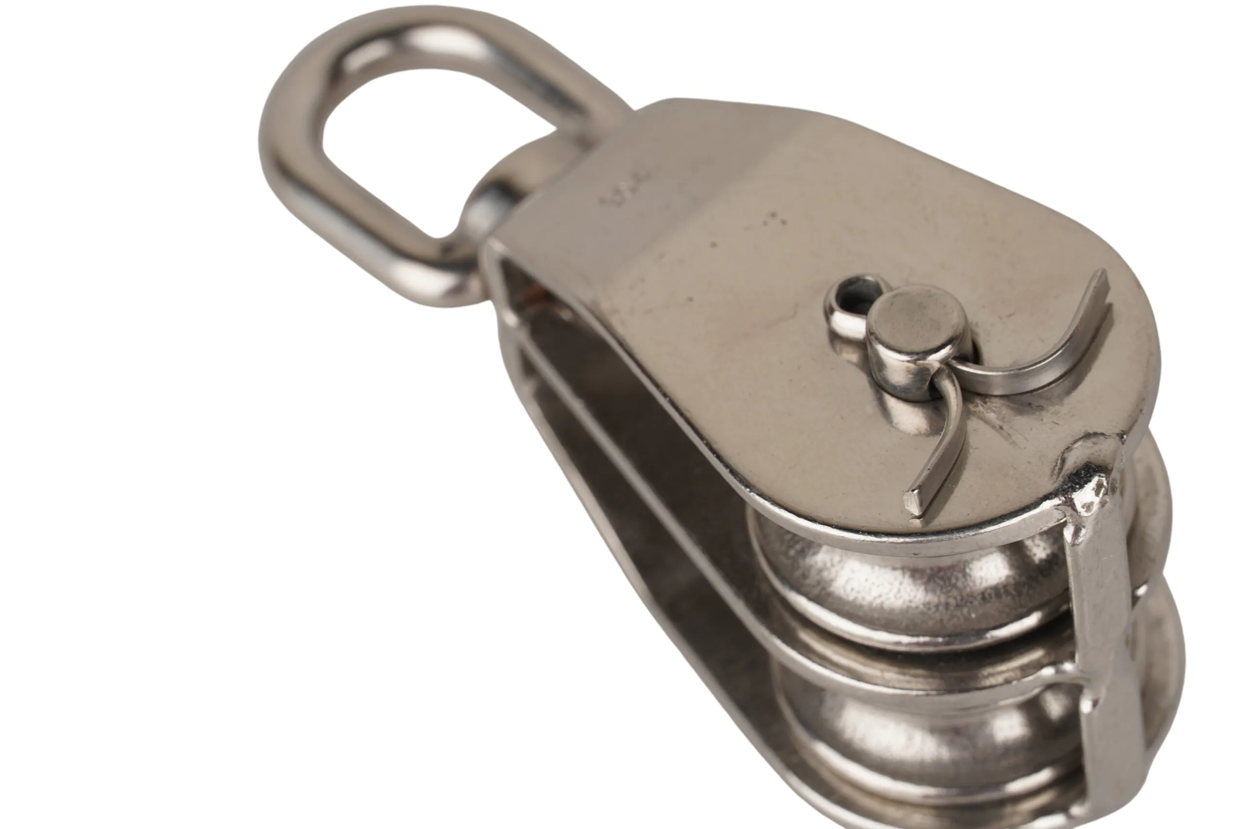 Umlenkrolle aus rostfreiem Edelstahl AISI 304, mit Doppelblock. Für das korrekte Ausrichten Ihres Seils, Drahtseils oder Kette.
