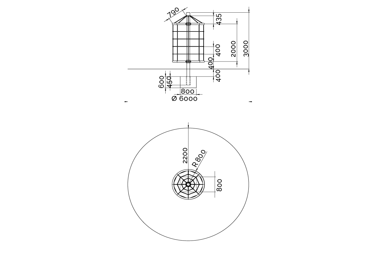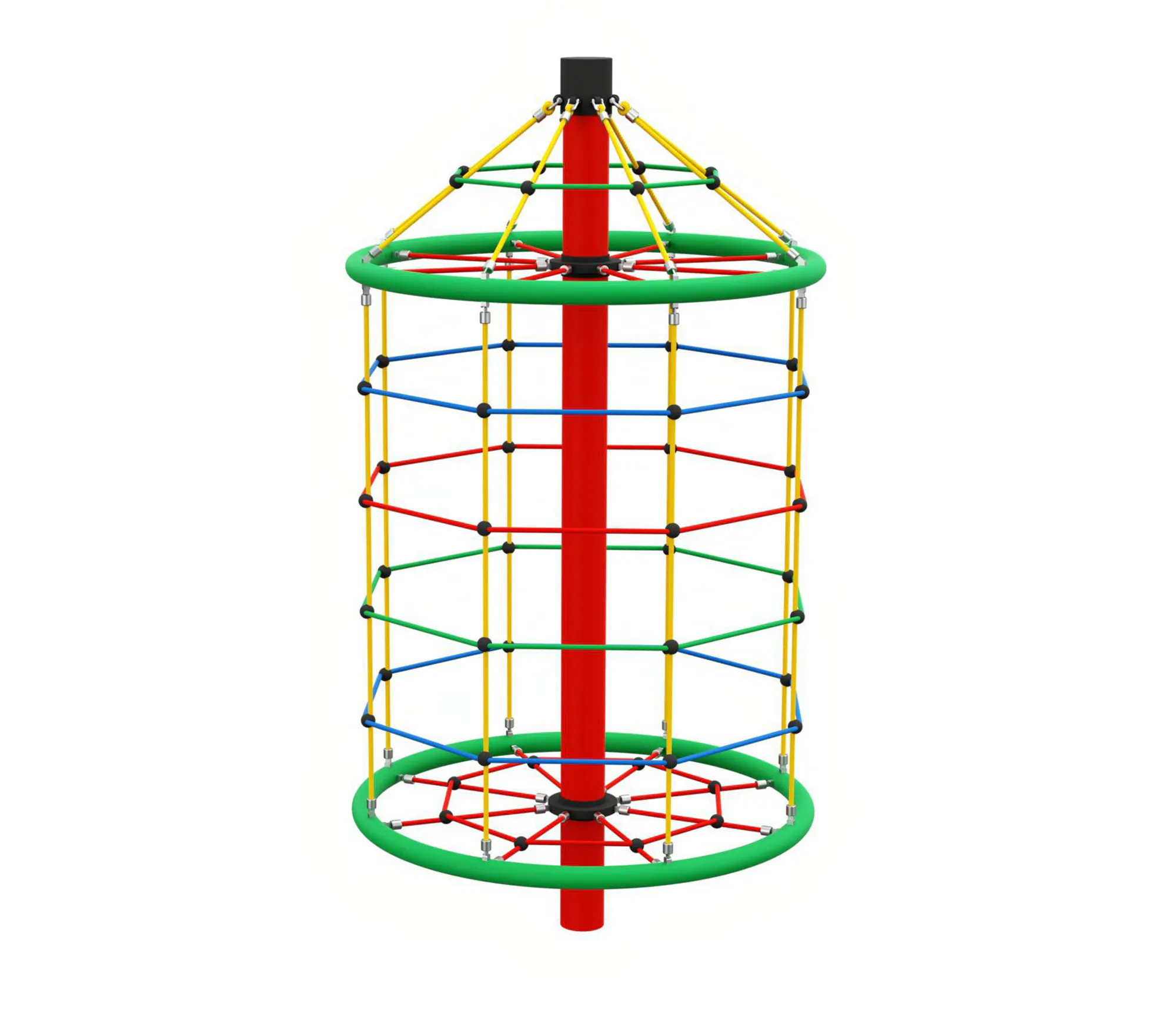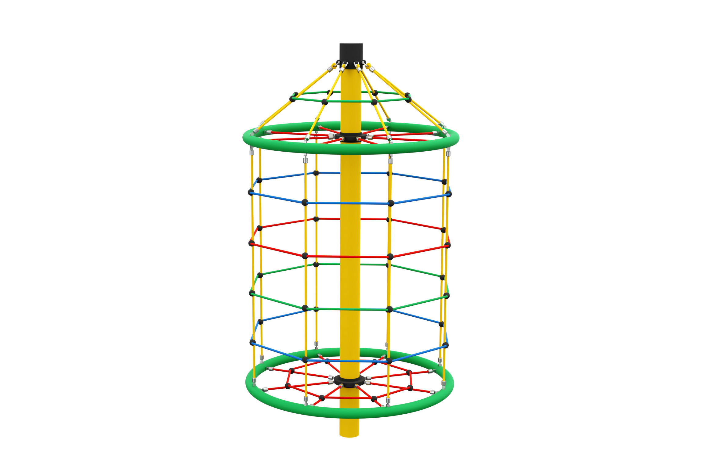 Kletterturm in Zylinderform mit 1,6m Durchmesser und 3m Höhe. Geeignet für bis zu 7 Benutzer zwischen 3 und 14 Jahren.
