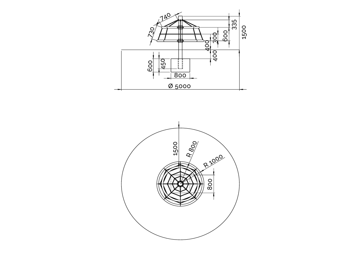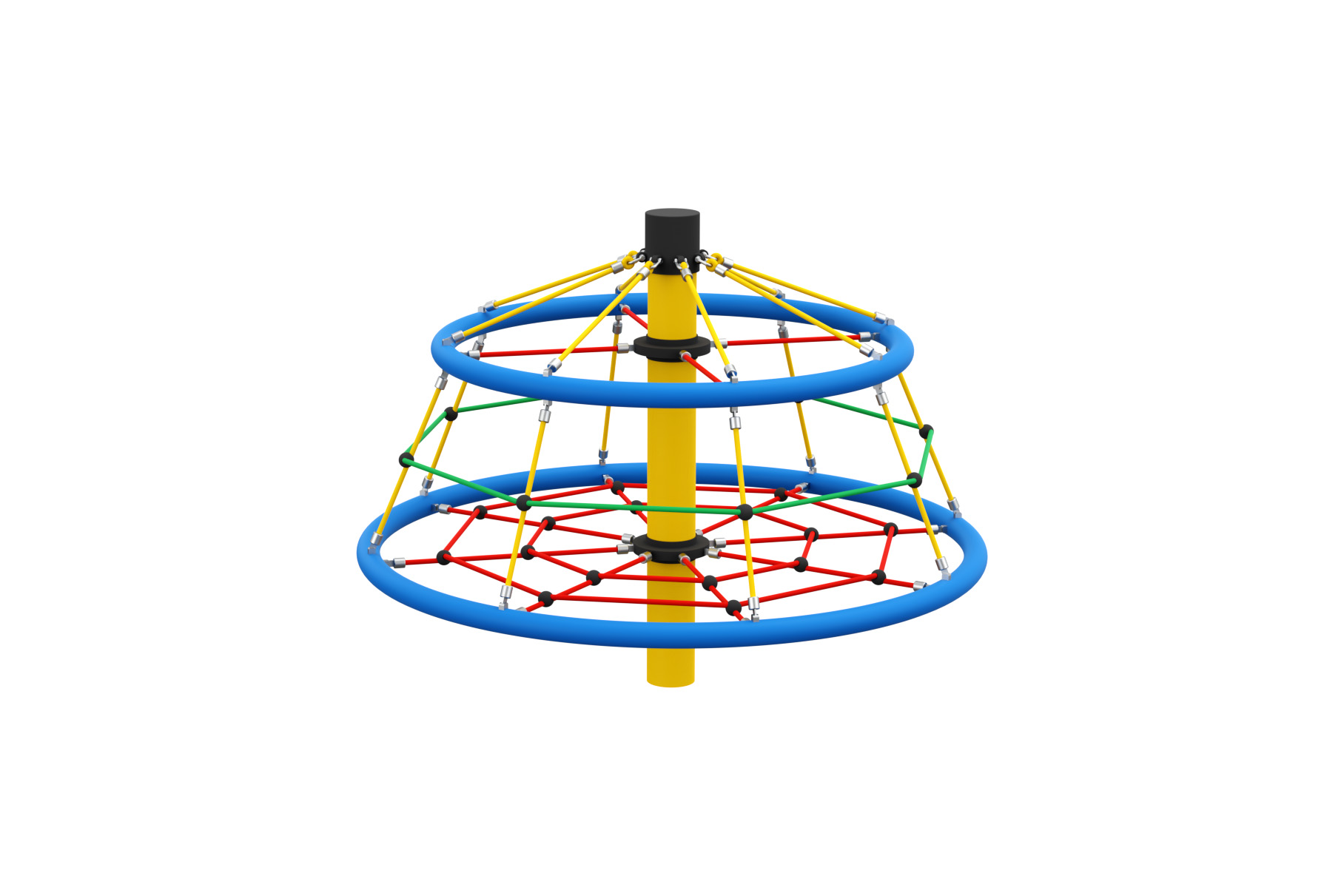 Kompakter Kletterturm mit 2m Durchmesser und 1,50m Höhe. Geeignet für bis zu 5 Benutzer zwischen 3 und 14 Jahren.