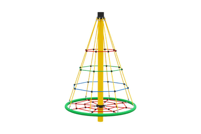Schmaler Kletterturm mit durchgehendem Boden mit 1,60m Durchmesser und 3m Höhe mit vollflächigem Netzboden. Geeignet für bis zu 4 Benutzer zwischen 3 und 14 Jahren.