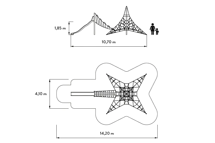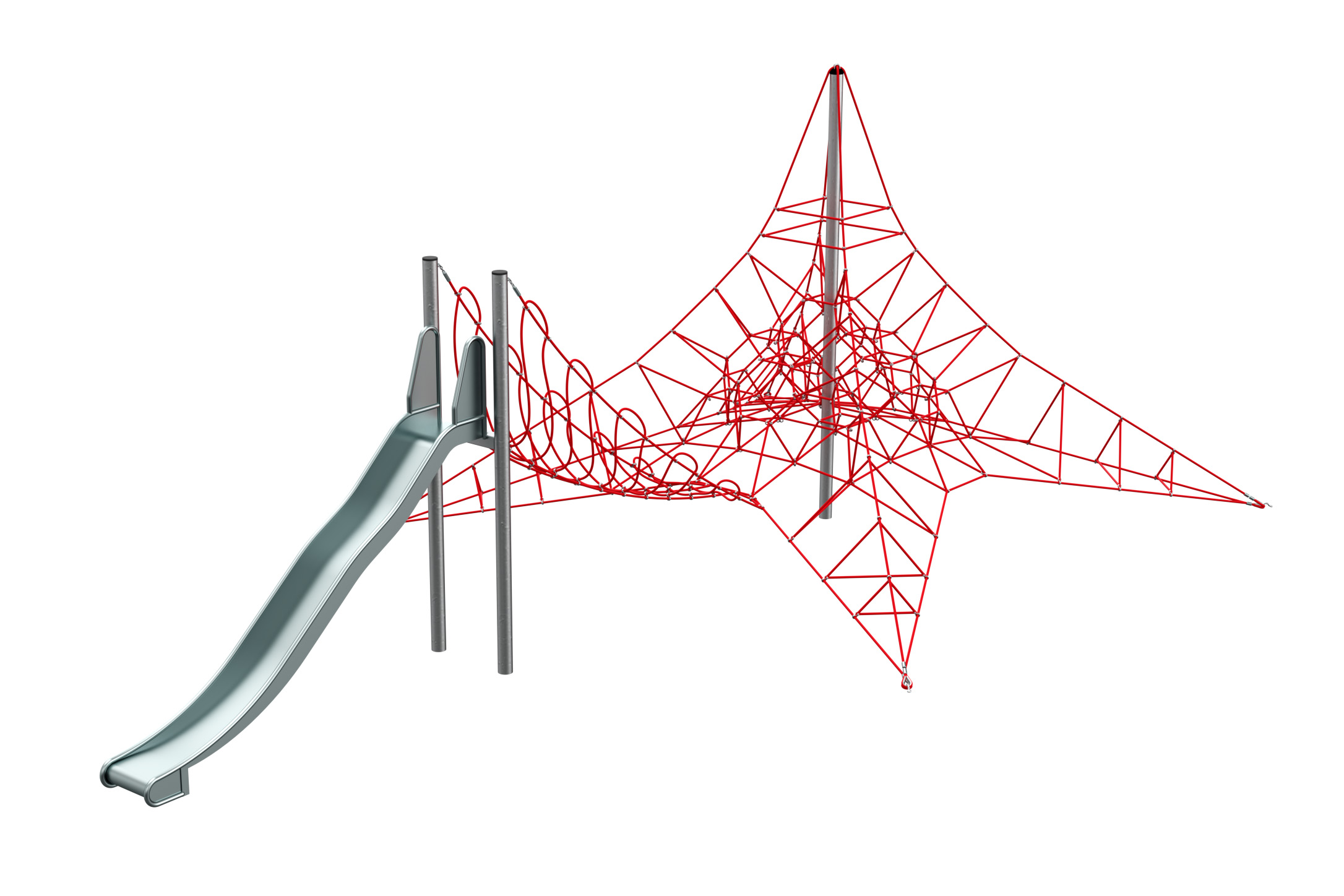 Für noch mehr Action: Clever angebaute Rutschbahn an die Raumnetzpyramide.