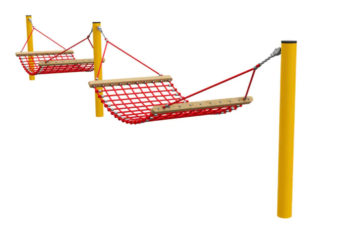 Rechteckiges Balancierelement mit niedriger Fallhöhe. Set inklusive 3 Standpfosten.
