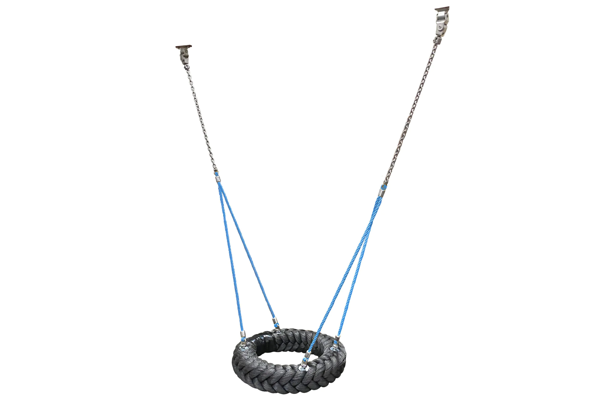 Reifenschaukel aus quadratischem Tauwerk.