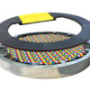 Rundes, barrierefreies Trampolin mit Sprungfläche 190cm Durchmesser. Lamellen für die Sprungmatte und Fallschutzplatten in diversen Farbvarianten verfügbar.