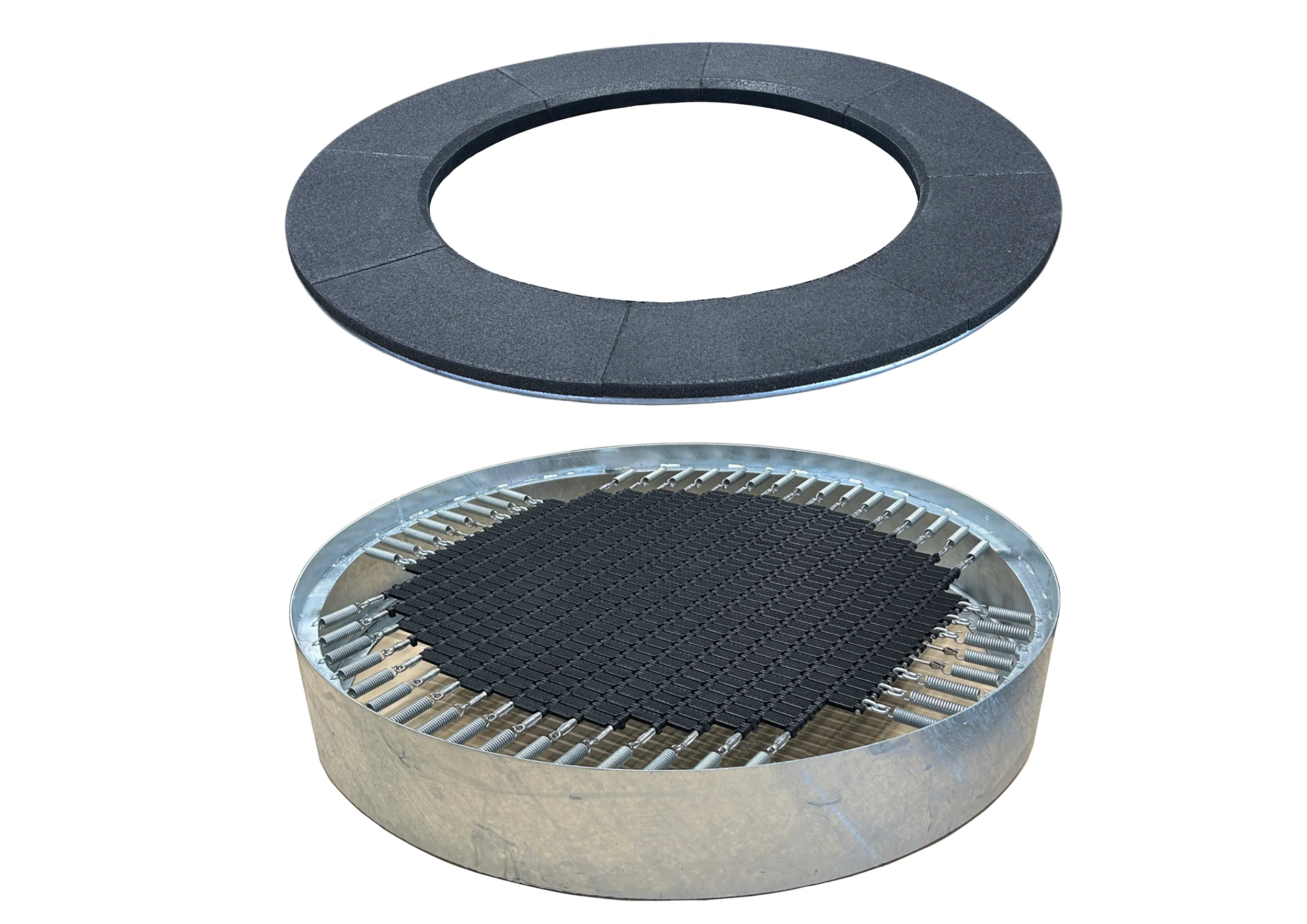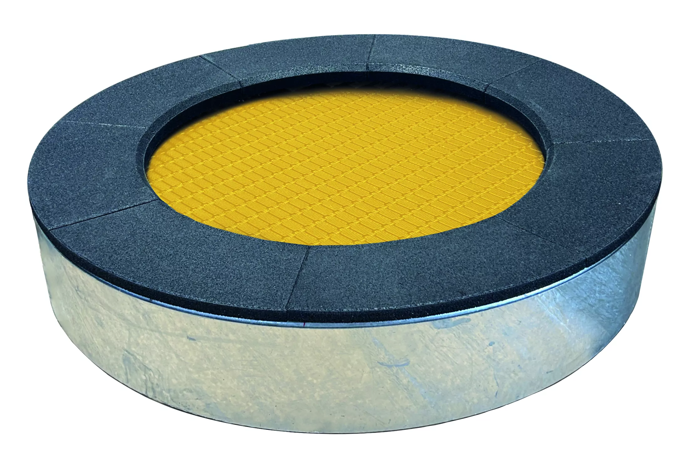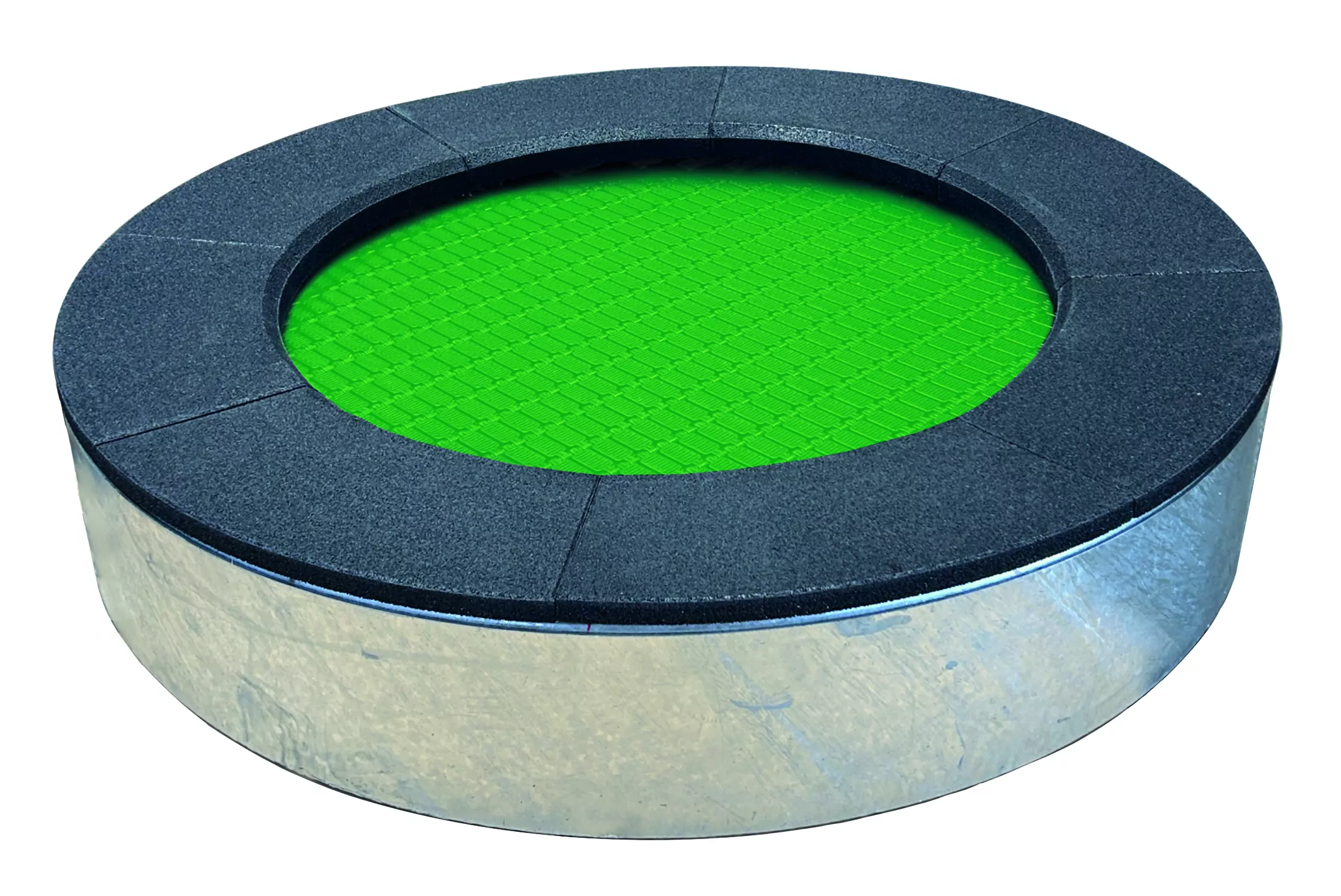 Rundes Trampolin mit Sprungfläche 120cm Durchmesser. Lamellen für die Sprungmatte und Fallschutzplatten in diversen Farbvarianten verfügbar.