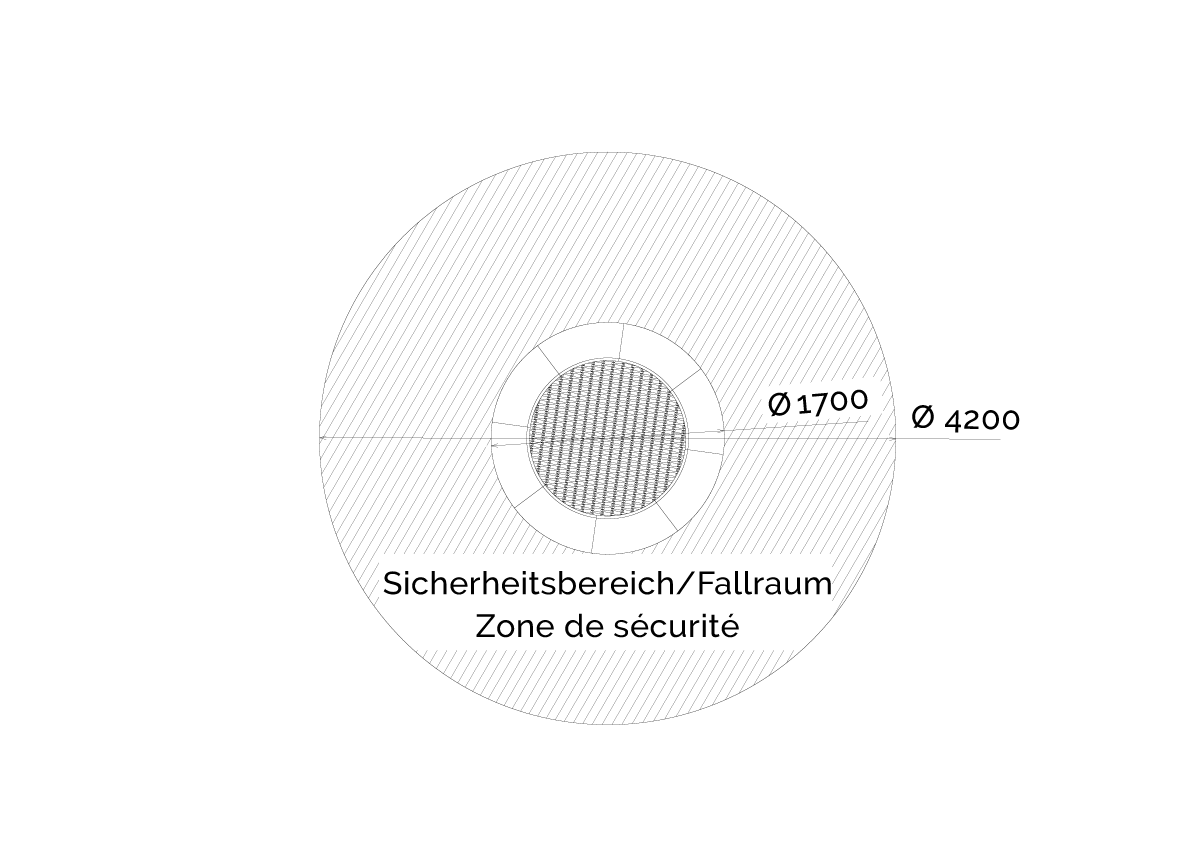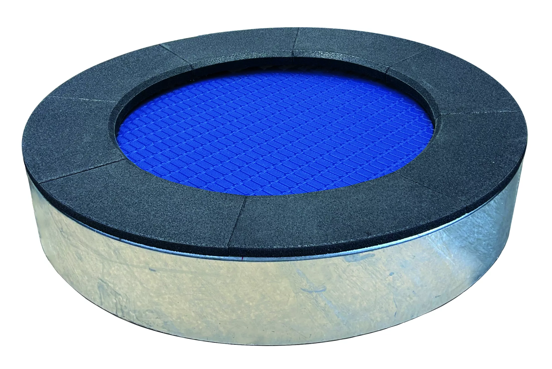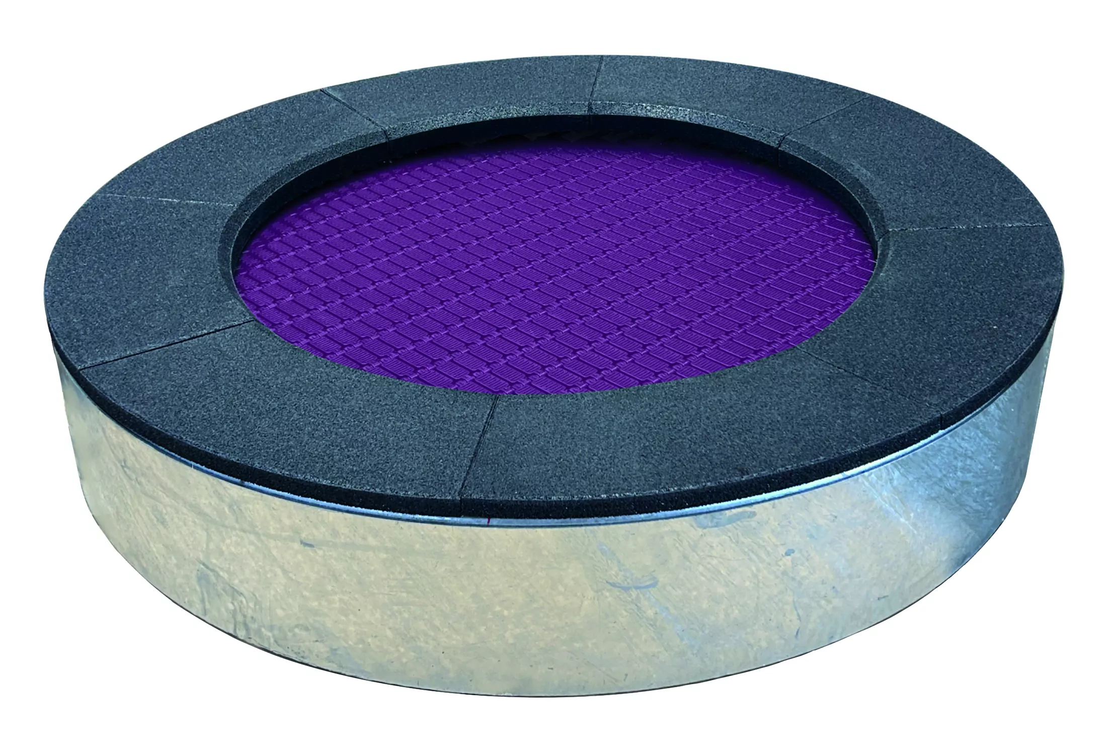 Rundes Trampolin mit Sprungfläche 120cm Durchmesser. Lamellen für die Sprungmatte und Fallschutzplatten in diversen Farbvarianten verfügbar.
