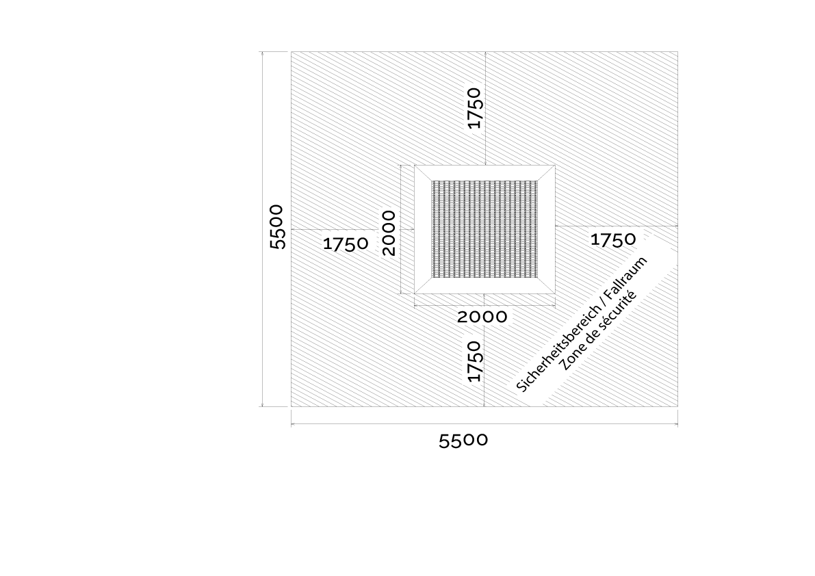 Trampolin mit Sprungfläche 150x150cm. Lamellen für die Sprungmatte und Fallschutzplatten in diversen Farbvarianten verfügbar.