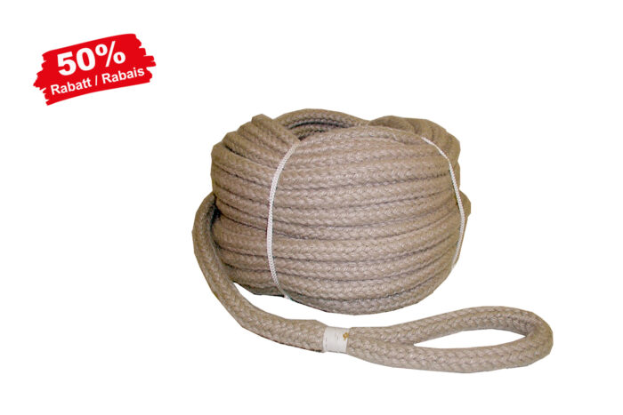 Ressemble à du chanvre, résiste cependant à la putréfaction. Très bonne prise et manipulation agréable. Tressage à 16 fuseaux. Avec boucle.
