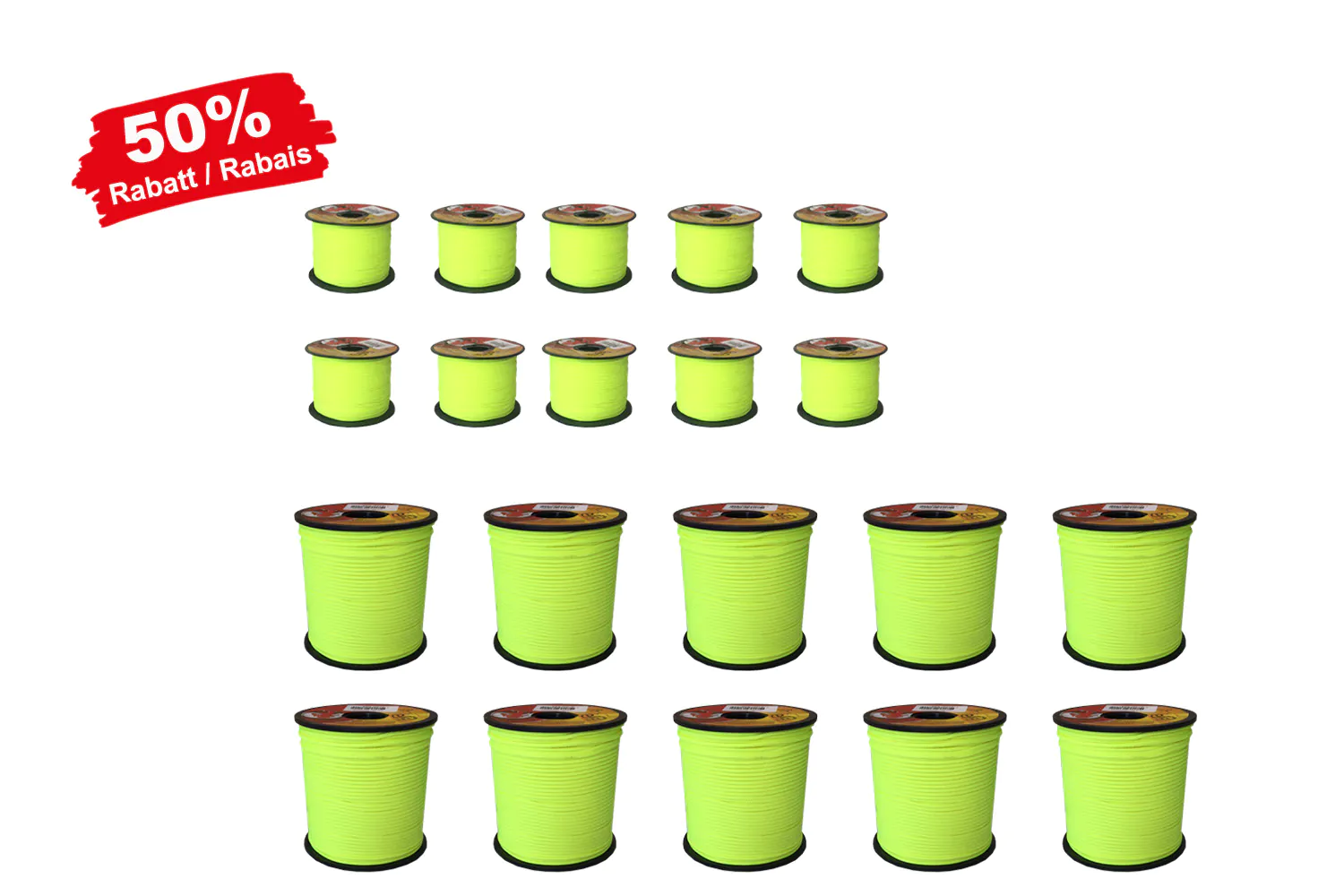 - 10 bobines de ficelles de maçon en polyester 2.5 mm, jaune neon, bobines à 100 m