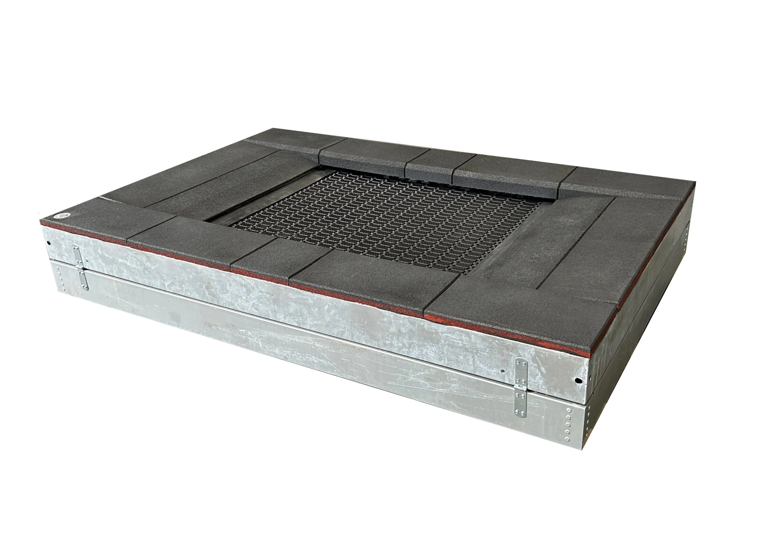 Trampoline rectangulaire avec surface de saut de 125 x 100 cm. Des rampes facilitent l’accès, même en fauteuil roulant. Lamelles pour le trampoline disponible dans diverses variantes de couleurs.