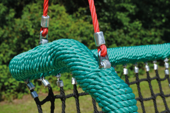 Balançoire-siège avec une surface d’assise de 1,29 m pour plusieurs personnes. Disponible sur demande avec corde de fixation.