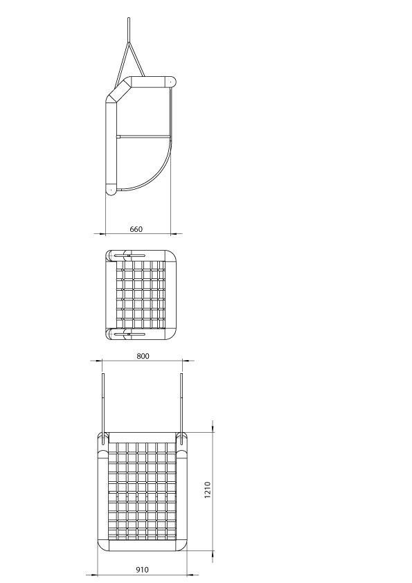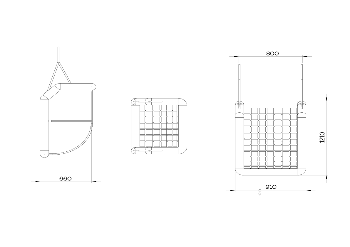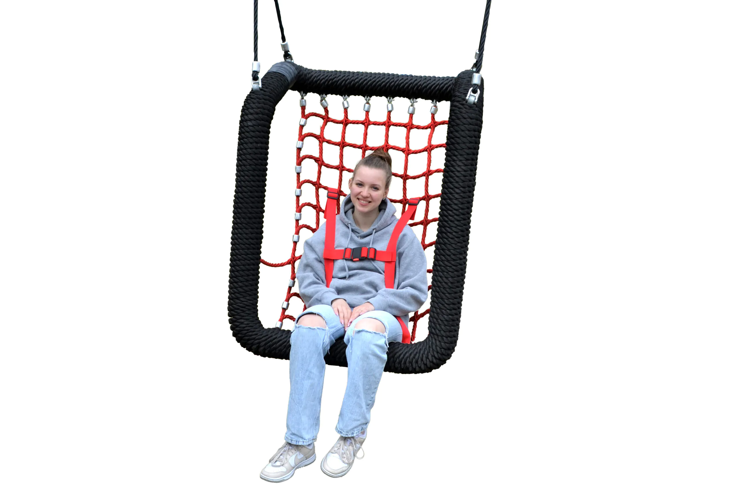 Balançoire-siège avec une surface d’assise de 0,88 m. Disponible sur demande avec ceinture de sécurité.