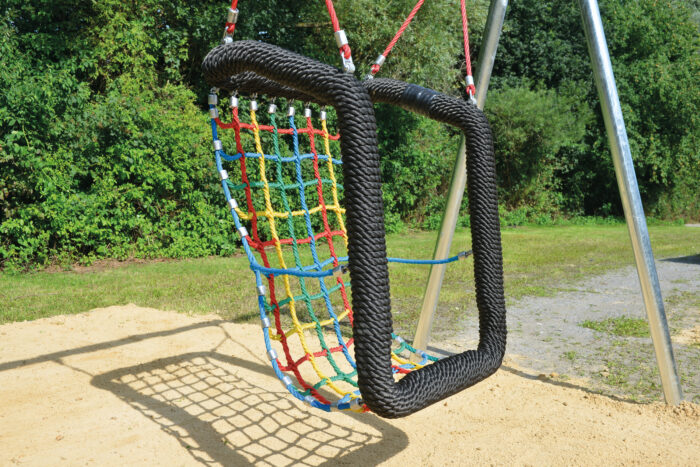 Balançoire-siège avec une surface d’assise de 0,88 m. Disponible sur demande avec ceinture de sécurité.