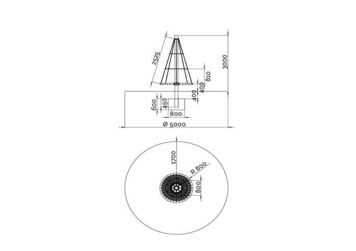 Tour à grimper de 1,60 m de diamètre et 3 m de hauteur. Convient à un maximum de 4 utilisateurs âgés de 3 à 14 ans.