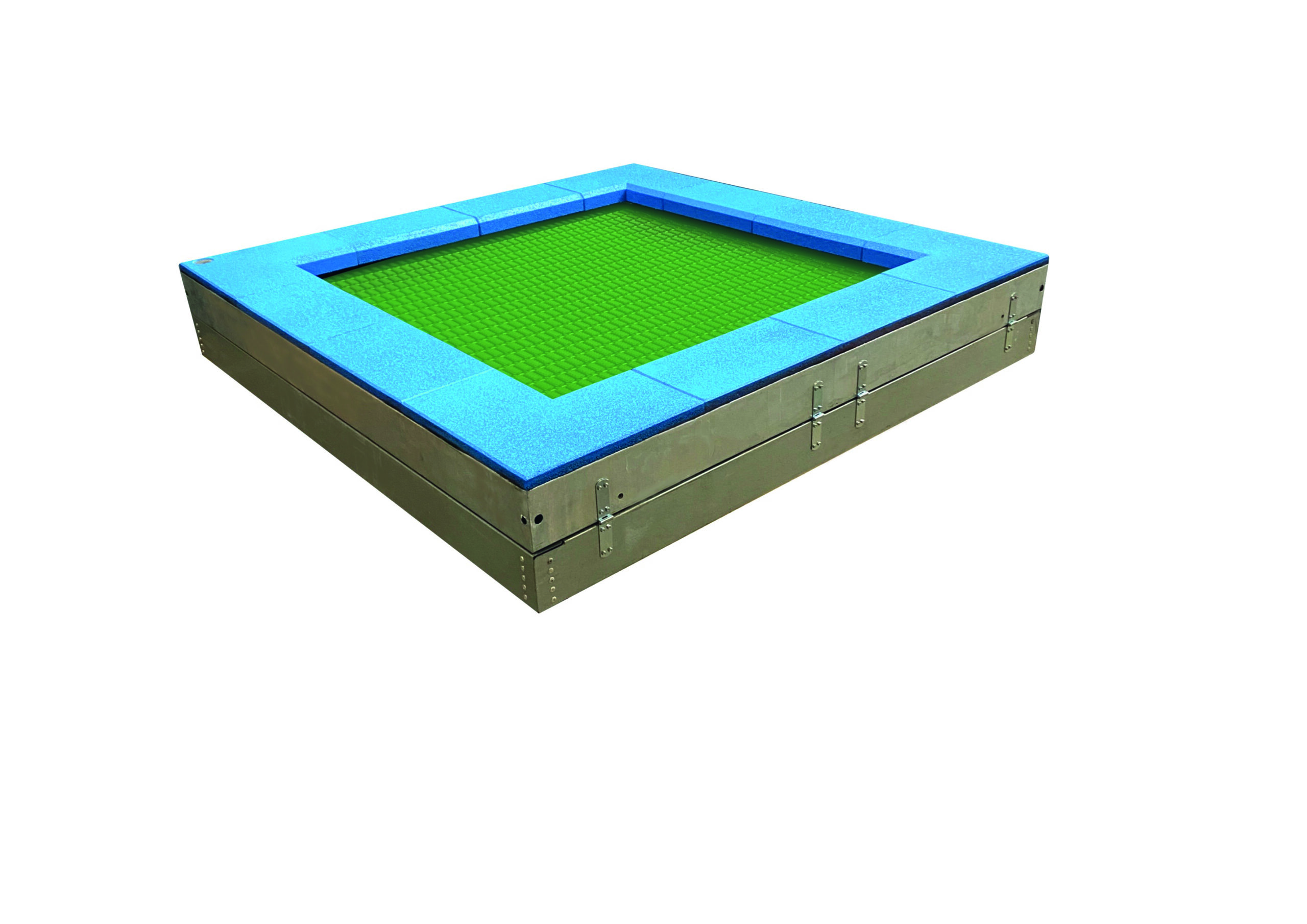 Trampoline avec surface de saut 150×150 cm. Lamelles pour le trampoline et dalles de protection contre les chutes disponibles dans diverses variantes de couleurs.