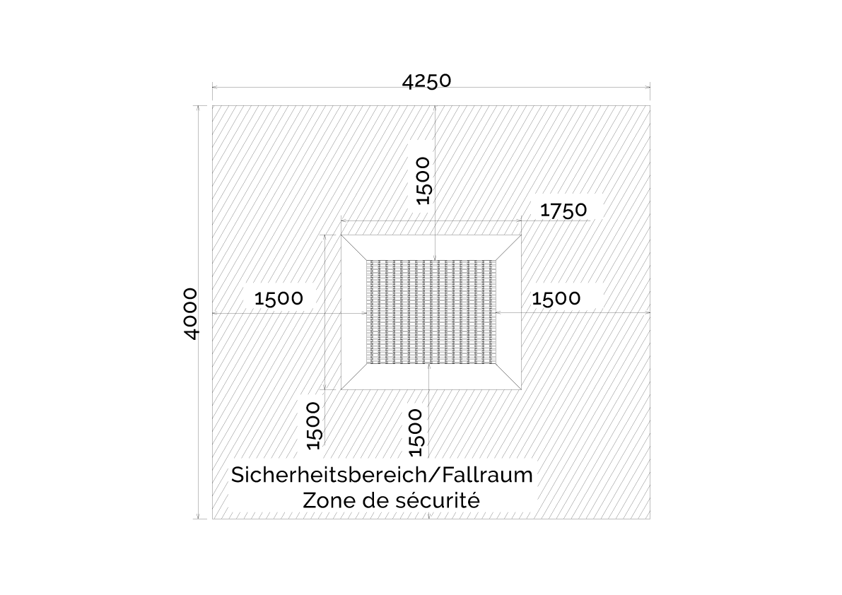 Trampoline avec surface de saut 100×125 cm. Lamelles pour le trampoline et dalles de protection contre les chutes disponibles dans diverses variantes de couleurs.