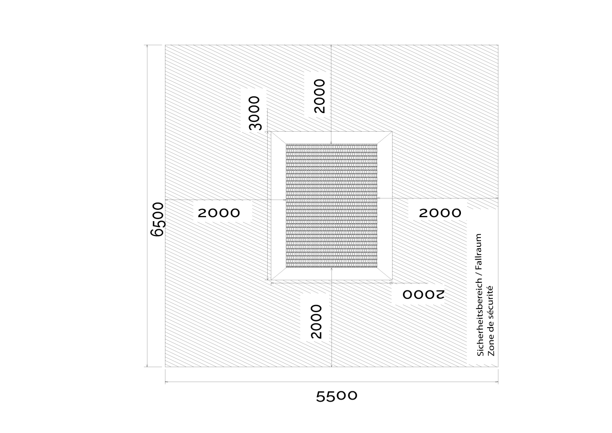 Trampoline avec surface de saut 250×150 cm. Lamelles pour le trampoline et dalles de protection contre les chutes disponibles dans diverses variantes de couleurs.