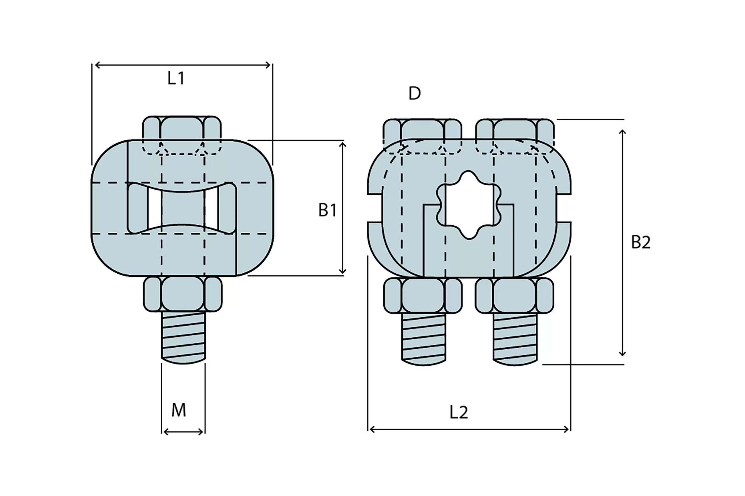 | Numéro d'article | Pour câble | Filetage | L1 | L2 | B1 | B2 | Poids / pièce |
