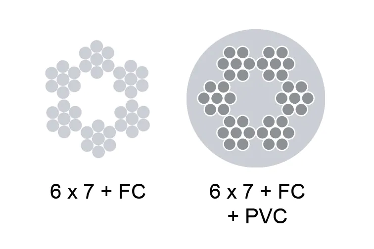 Câble d’acier galvanisés, sans confection. Aussi disponible avec gaine en matière plastique.