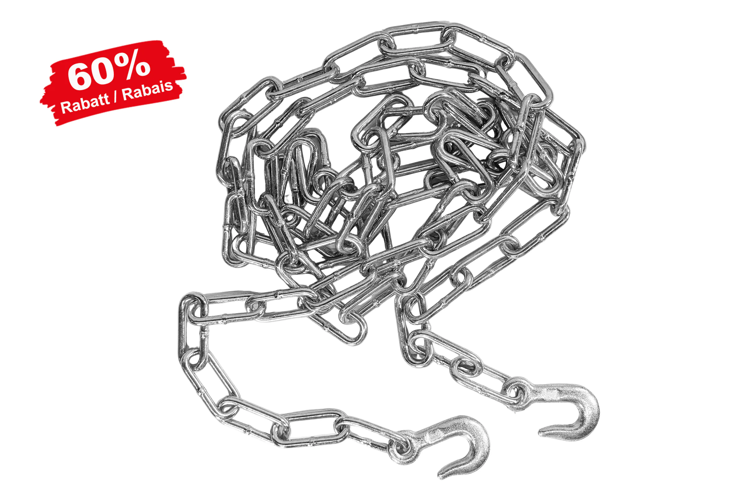Pour la construction de routes et de tranchées. Chaîne à maillons en C selon DIN 763, en acier brillant, avec 2 crochets.
