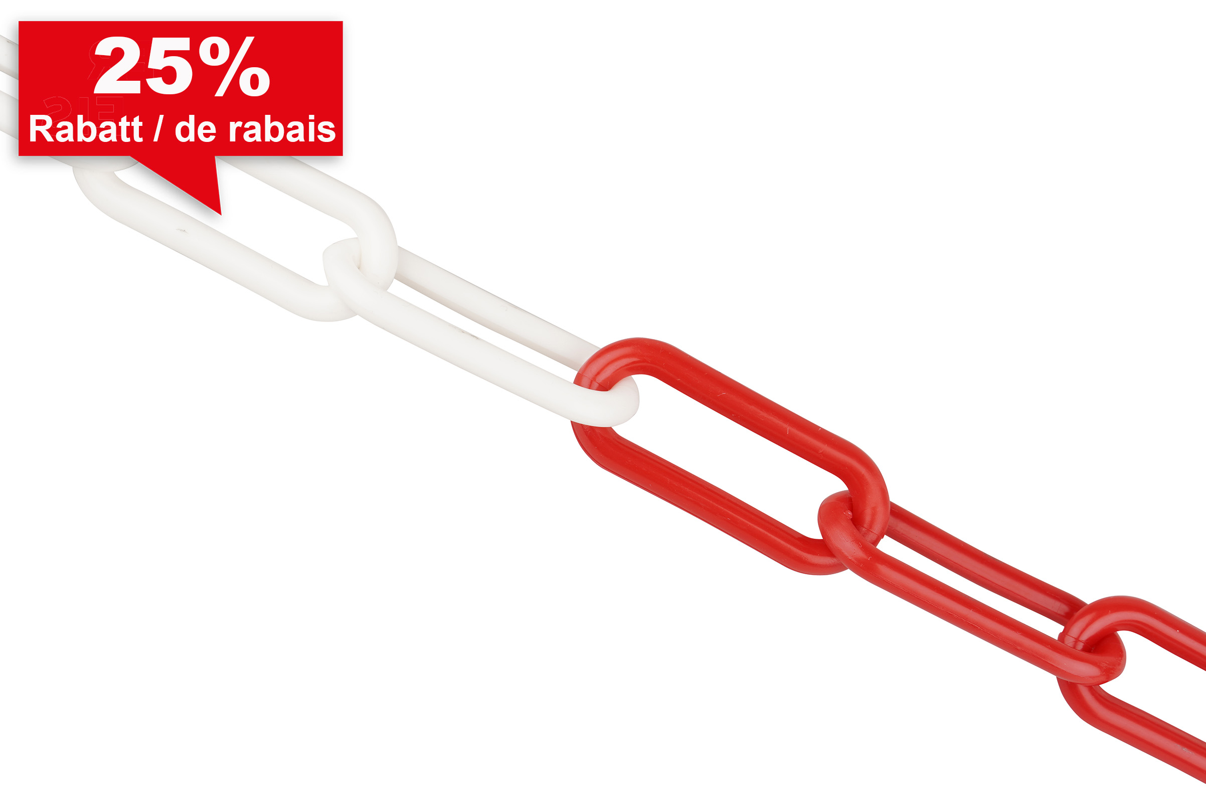 Chaîne en polyéthylène (PE), rouge-blanc. Vente sur bobine ou en sachet (5 mètres).