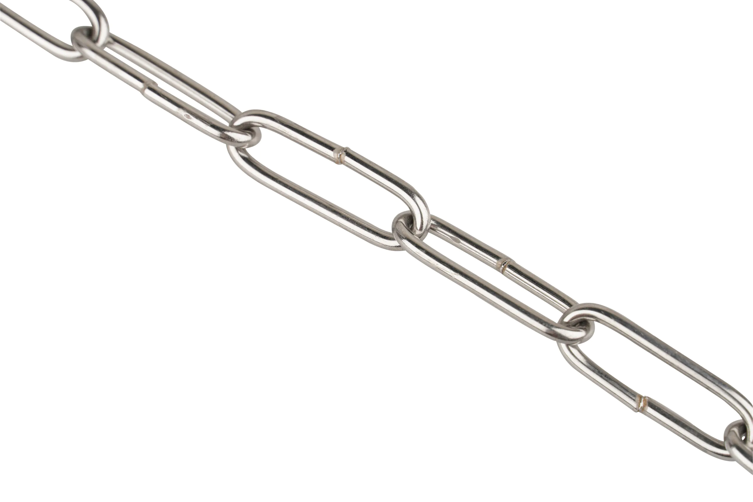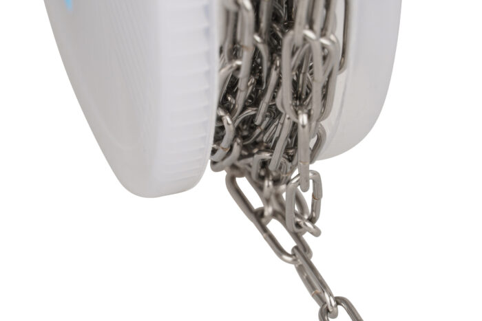 Chaîne en acier inoxydable galvanisé, soudée. Ne convient pas au levage. Disponible sur bobines.