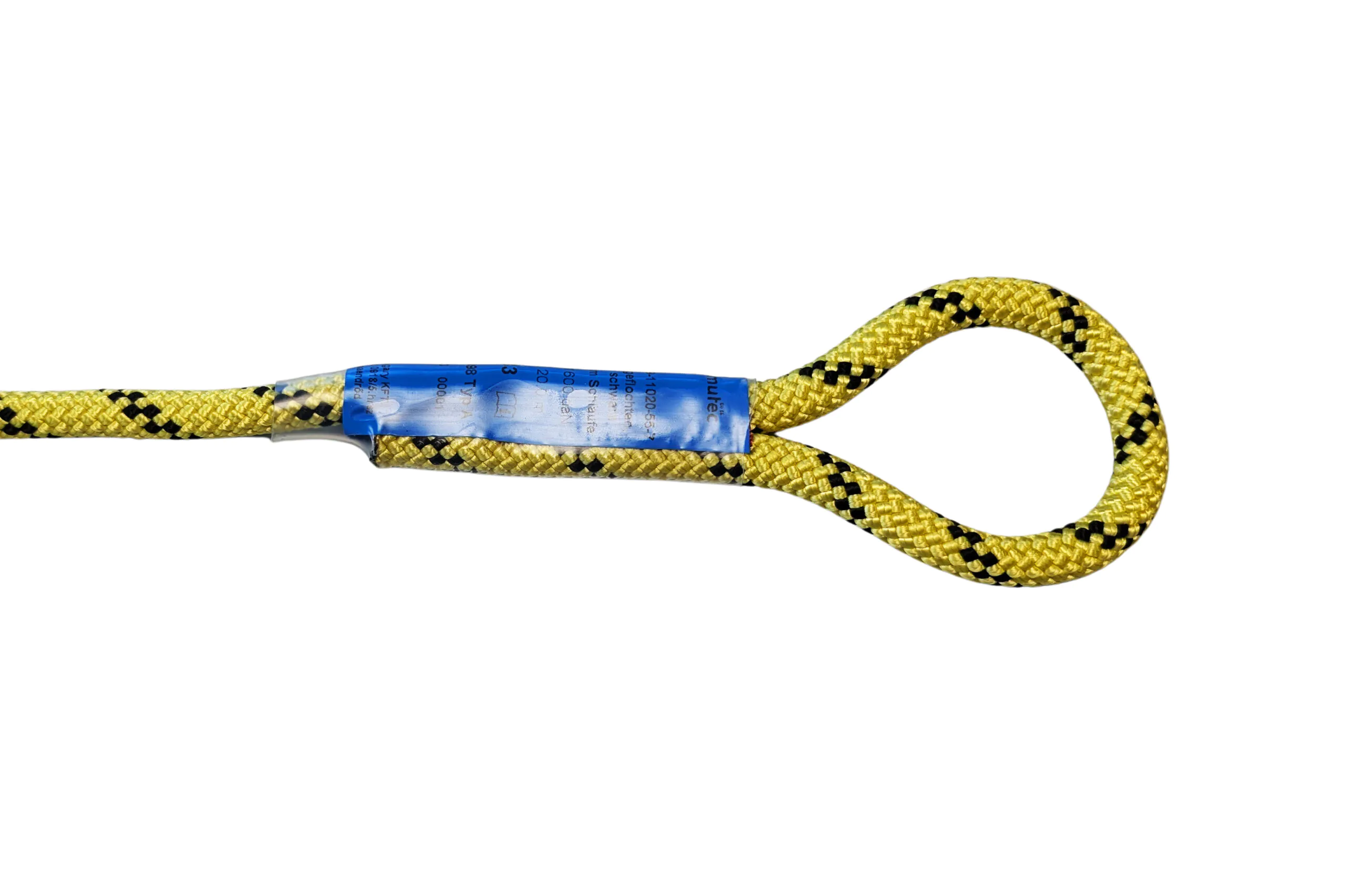 Corde semi-statique destinée aux travaux en hauteur et aux pompiers, issue de notre propre production, certifiée conforme à la norme EN 1891. Équipée de boucles de 10 cm aux deux extrémités.