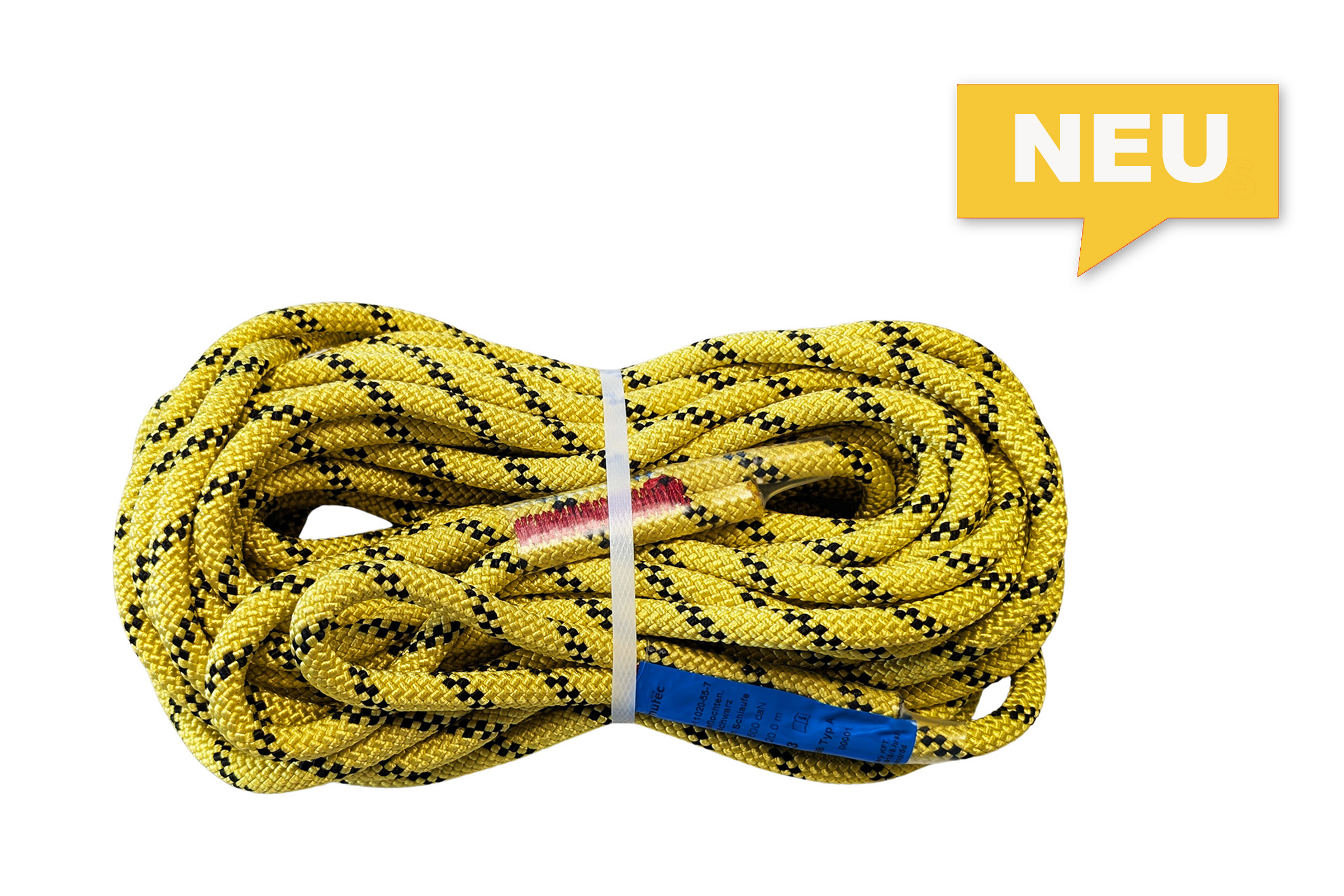 Halbstatisches Seil für die Höhenarbeit und für die Feuerwehr, aus eigener Produktion, zertifiziert nach EN 1891. Beidseitig mit Schlaufen à 10cm. Verfügbar in zwei Farben.