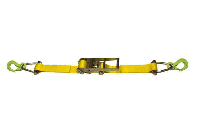 Sangles d’arrimage avec tendeur à cliquet et crochets à lames de sécurité EN 12195-2. Couleur standard en jaune, autres couleurs sur demande.
